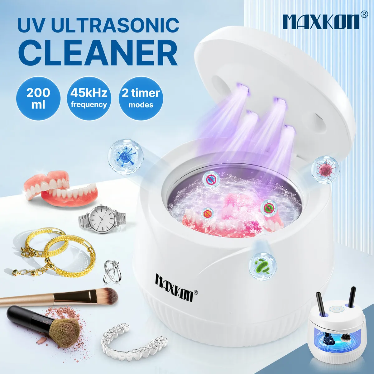 Elevate your daily hygiene! This compact Maxkon cleaner combines ultrasonic waves and UV light to disinfect retainers, jewellery, and brushes in minutes. Choose from two modes for a quick or deep clean. Its portable design makes safe, thorough cleaning effortless at home or on the go.