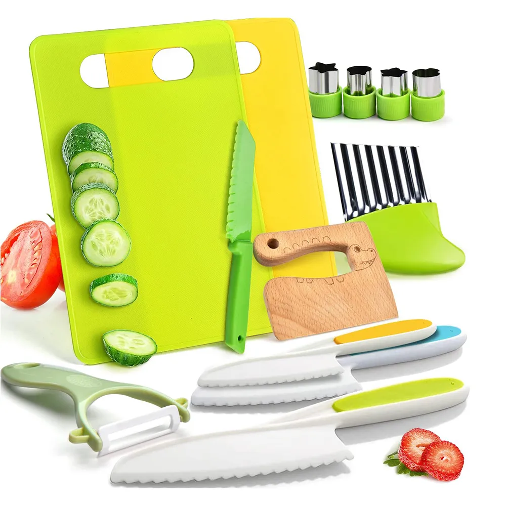 #2 Click to Buy 50% Off Sale on 13Pcs Toddler Knife Set Montessori Real Cooking Kitchen Tools Toys for Kids Age 3+ Real Plastic Safe Knives Crinkle Cutter Cutting Board