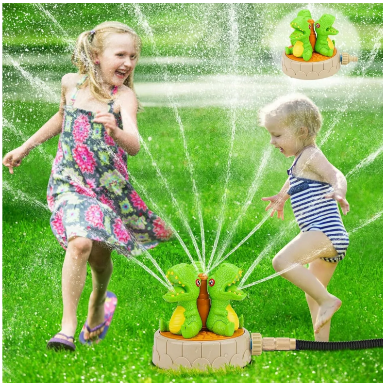 This 360-degree rotating dinosaur sprinkler creates exciting summer fun! With 13 nozzles spraying water 10-20 feet, it easily connects to any garden hose. Made from durable, leak-proof materials, it provides a safe and refreshing outdoor activity for children aged three and up.