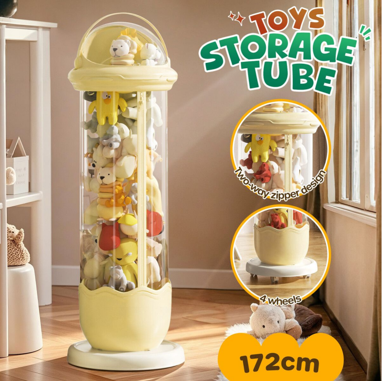 #3 Click to Buy 50% Off Sale on Kids Toys Storage Tube Box Stuffed Animal Zoo Plush Soft Doll Organiser Playroom Display Cabinet Holder Container Vertical Stand with Wheels 172x31cm