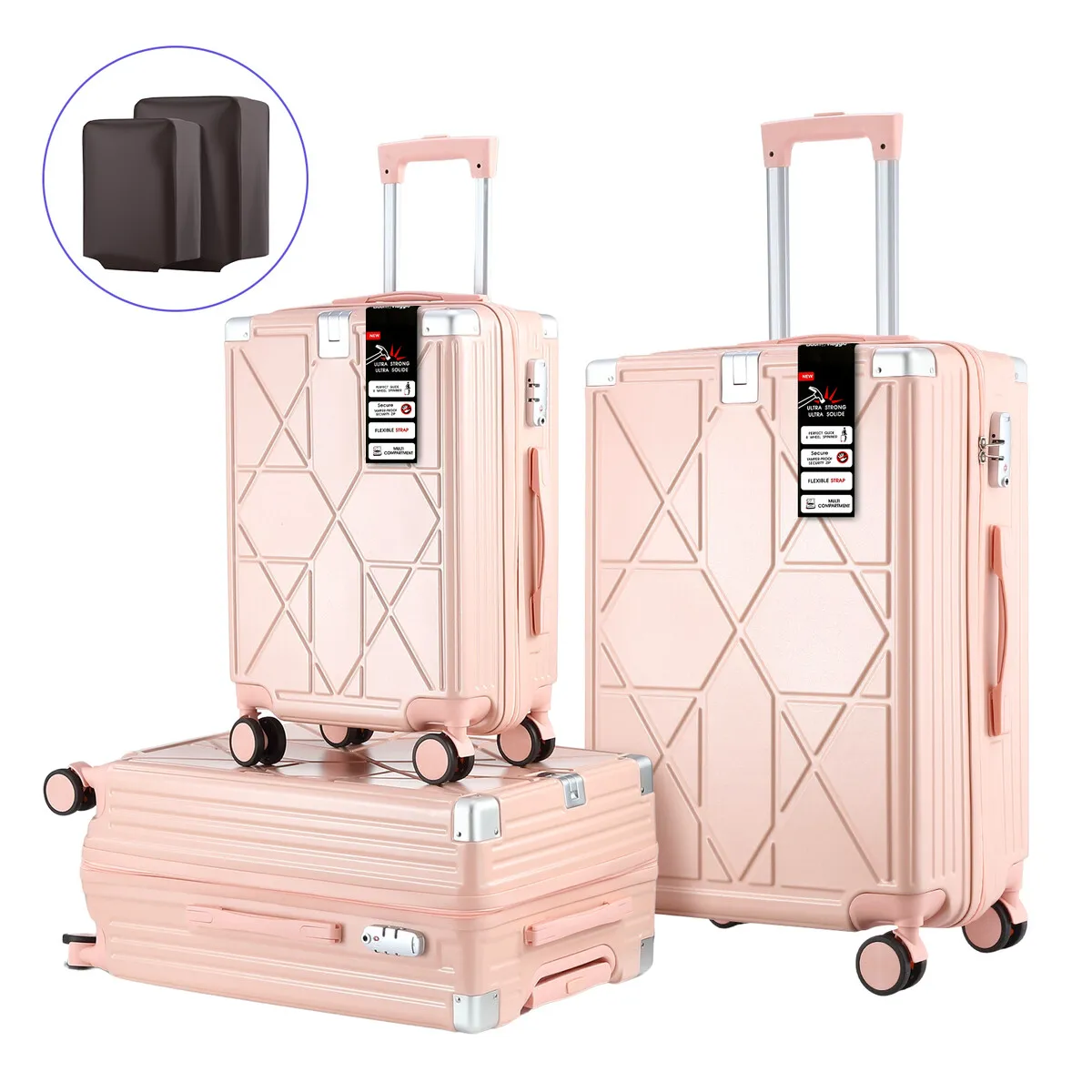 #10 Click to Buy 40% Off Sale on 3 Piece Luggage Suitcase Set Carry On Traveller Bag Hard Shell Cabin Baggage Travel Case Lightweight Rolling Trolley TSA Lock Front Hook 2 Covers Pink