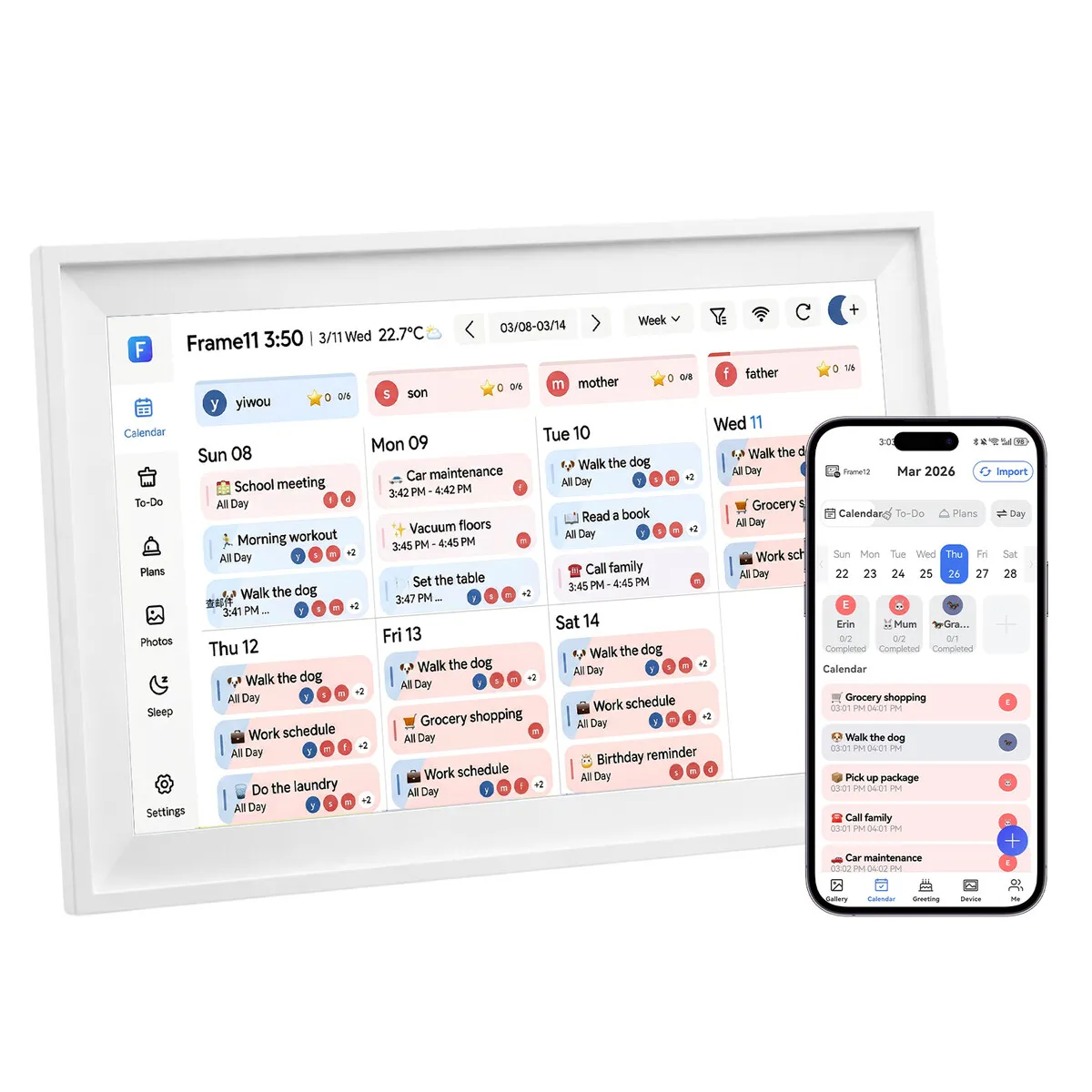 Stay organised with this 10.1″ WiFi digital calendar planner. It features a bright IPS touchscreen, dual-band WiFi for Google Calendar sync, a chore and reward system, meal planning tools, and a photo frame mode. With 32GB storage, auto-rotation, and helpful reminders, it brings stress-free organisation and a relaxed lifestyle to any modern home.