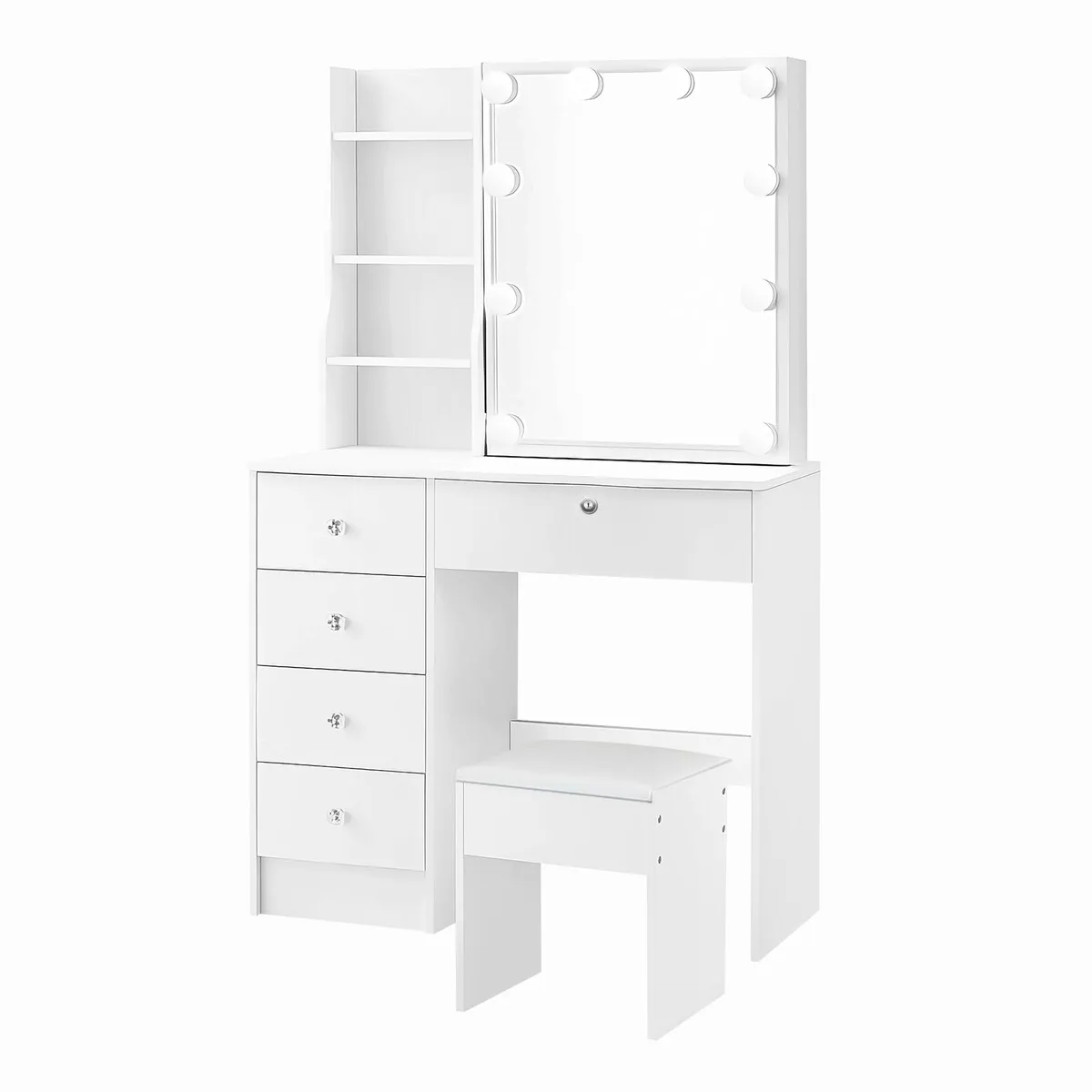 #9 Click to Buy 47% Off Sale on White Dressing Table and Stool Set Bedroom Dresser Makeup Vanity Desk with 10 LED Lighted Hollywood Mirror 5 Storage Drawer 4 Shelves Modern Furniture
